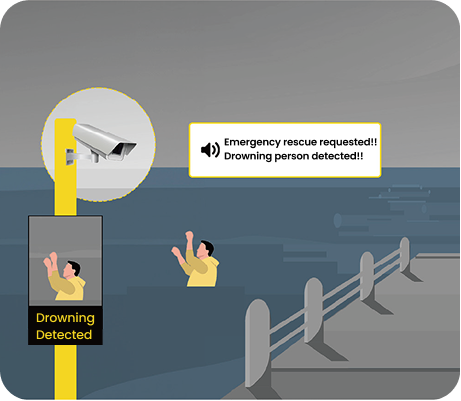 · Automatically displays incident location and enlarged image of the drowning person on the control center monitor